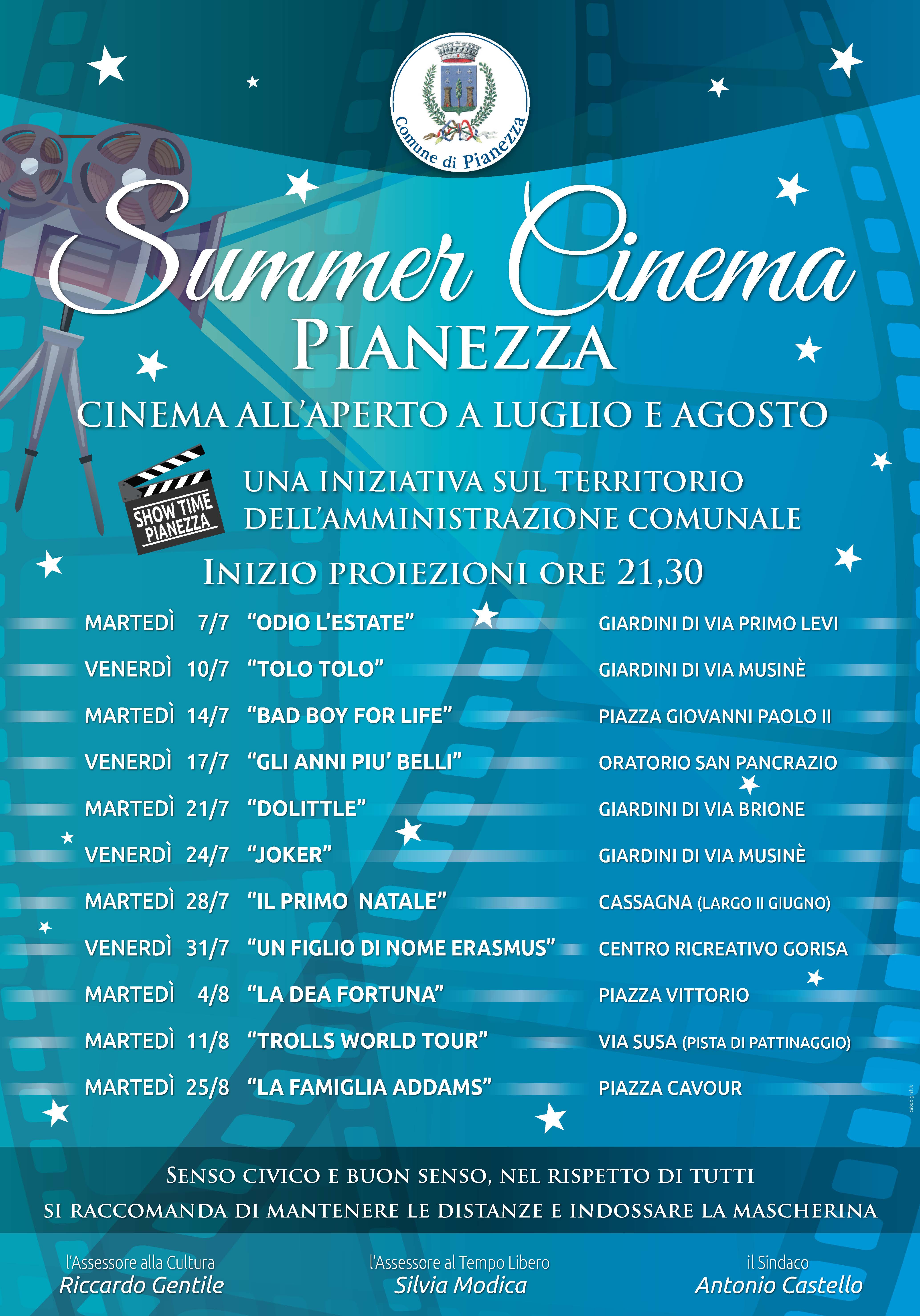 A Pianezza dal 7/7/2020 al 25/08/2020 SUMMER CINEMA.