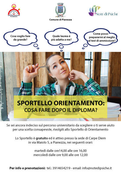 Lo sportello è gratuito ed è attivo presso la sede di Carpe Diem in via Maiolo 5 a Pianezza, nei seguenti orari: