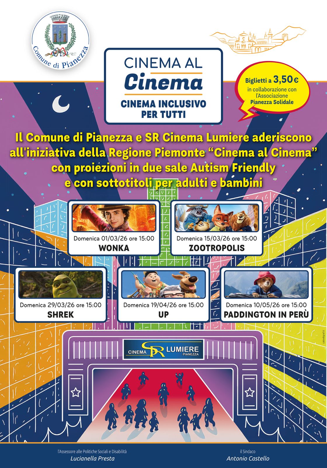 Il Comune di Pianezza e SR Cinema Lumiere aderiscono all'iniziativa della Regione Piemonte "Cinema al Cinema" con proiezioni in due sale Autism Friendly e con sottotitoli per adulti e bambini.