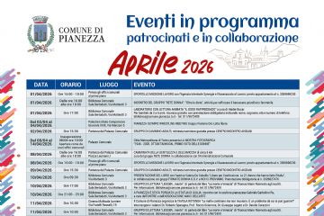 Eventi in programma patrocinati e in collaborazione dal Comune di Pianezza.