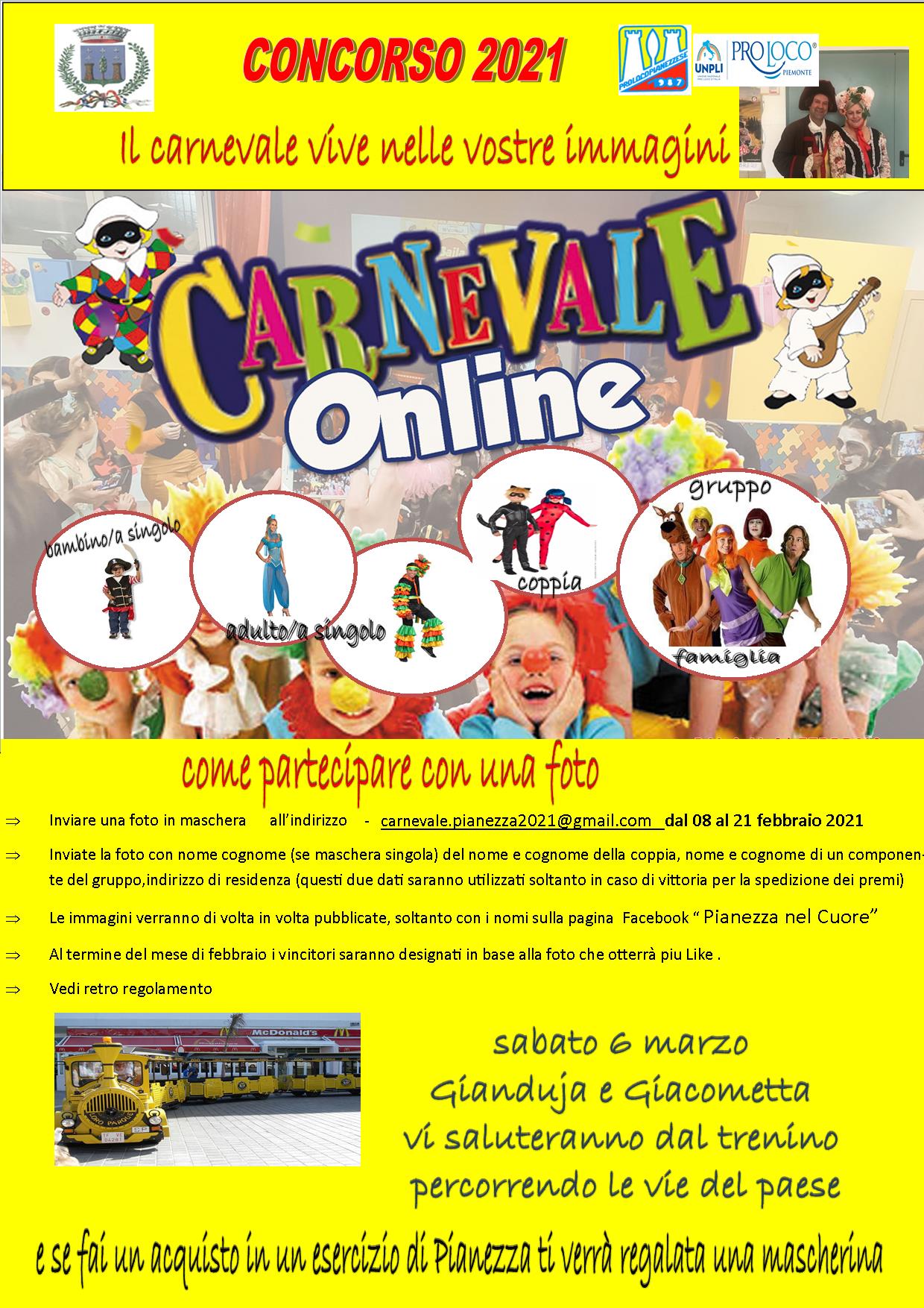 Sabato 6 marzo Gianduja e Giacometta vi saluteranno dal trenino percorrendo le vie del paese
