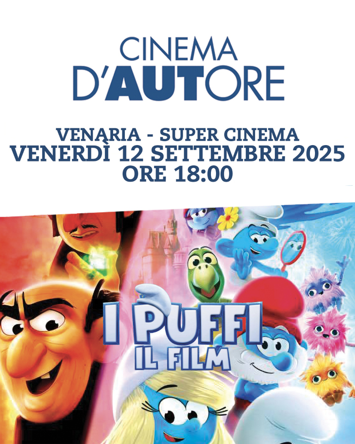 Venerdì 12 settembre 2025 ore 18.00 “I Puffi” presso il cinema Supercinema di Venaria Reale Piazza Vittorio Veneto, 5 (prenotazione entro il 09/09/2025)