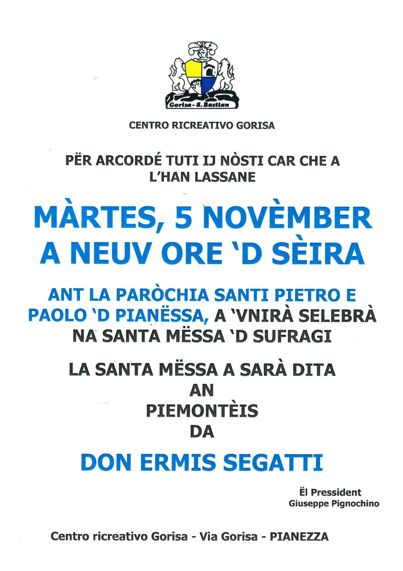 Celebrazione Della Santa Messa Di Suffragio In Piemontese