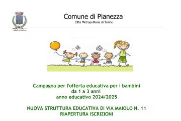 Il Comune di Pianezza, per l’anno 2024/2025, propone la seguente offerta educativa per i bambini fino