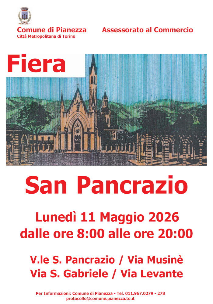 Il giorno 11 maggio 2026 dalle ore 8,00 alle ore 20,00, si svolgerà in questo Comune l’annuale Fiera di San Pancrazio.