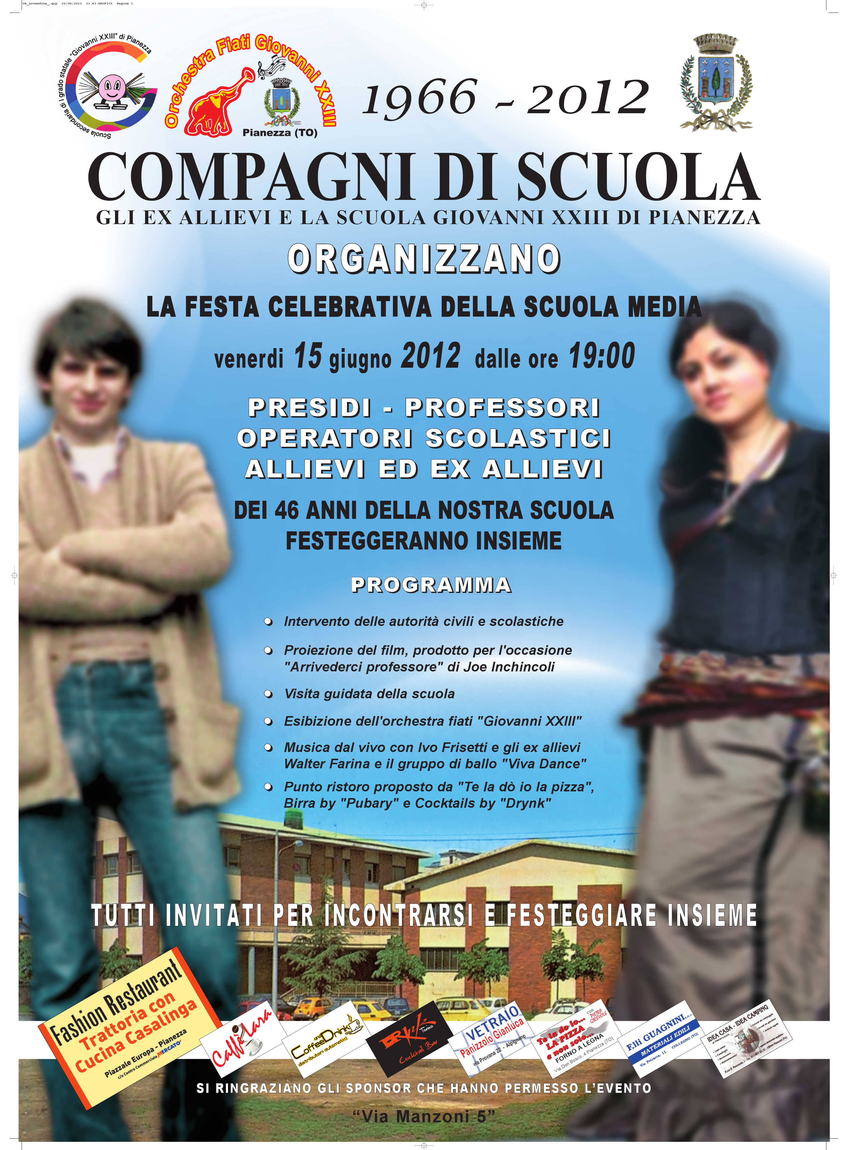 Manifestazione celebrativa delle attività dellla scuola, appuntamento con tutti coloro che sono passati dalla scuola dal 1966 ad oggi…Esibizioni canore, mostre e stand…