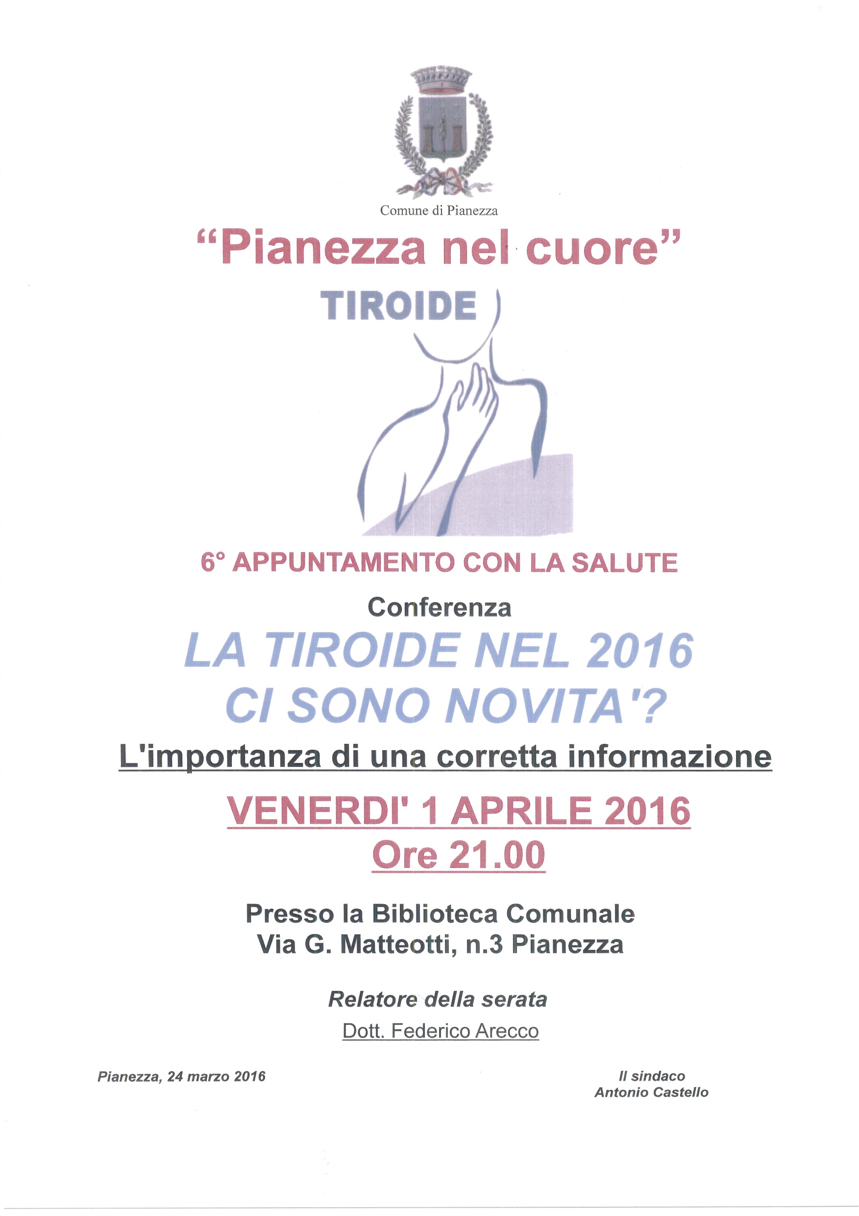 Presso la Sala Conferenze della Biblioteca Comunale Via G. Matteotti n. 3 Pianezza