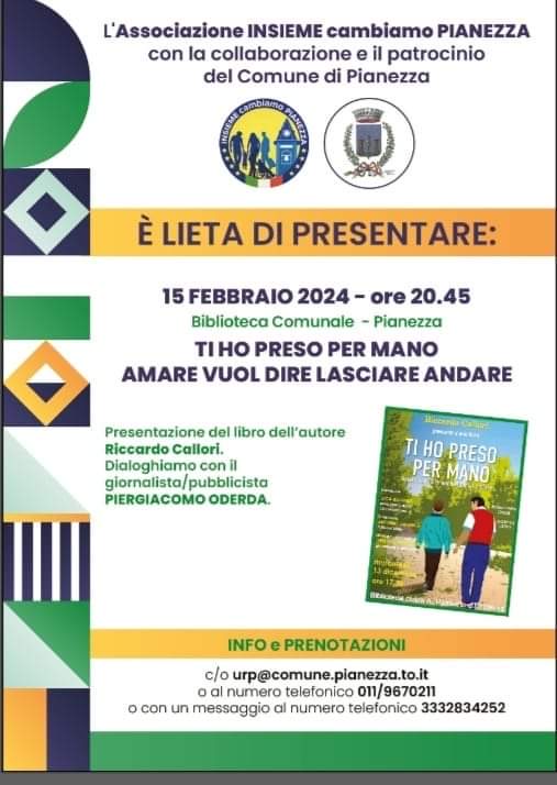 Il 15 febbraio 2024 alle ore 20.45 presso la Biblioteca Comunale di Pianezza un incontro per la presentazione del libro TI HO PRESO PER MANO Amare vuol dire anche lasciare andare - Edizioni Mille.