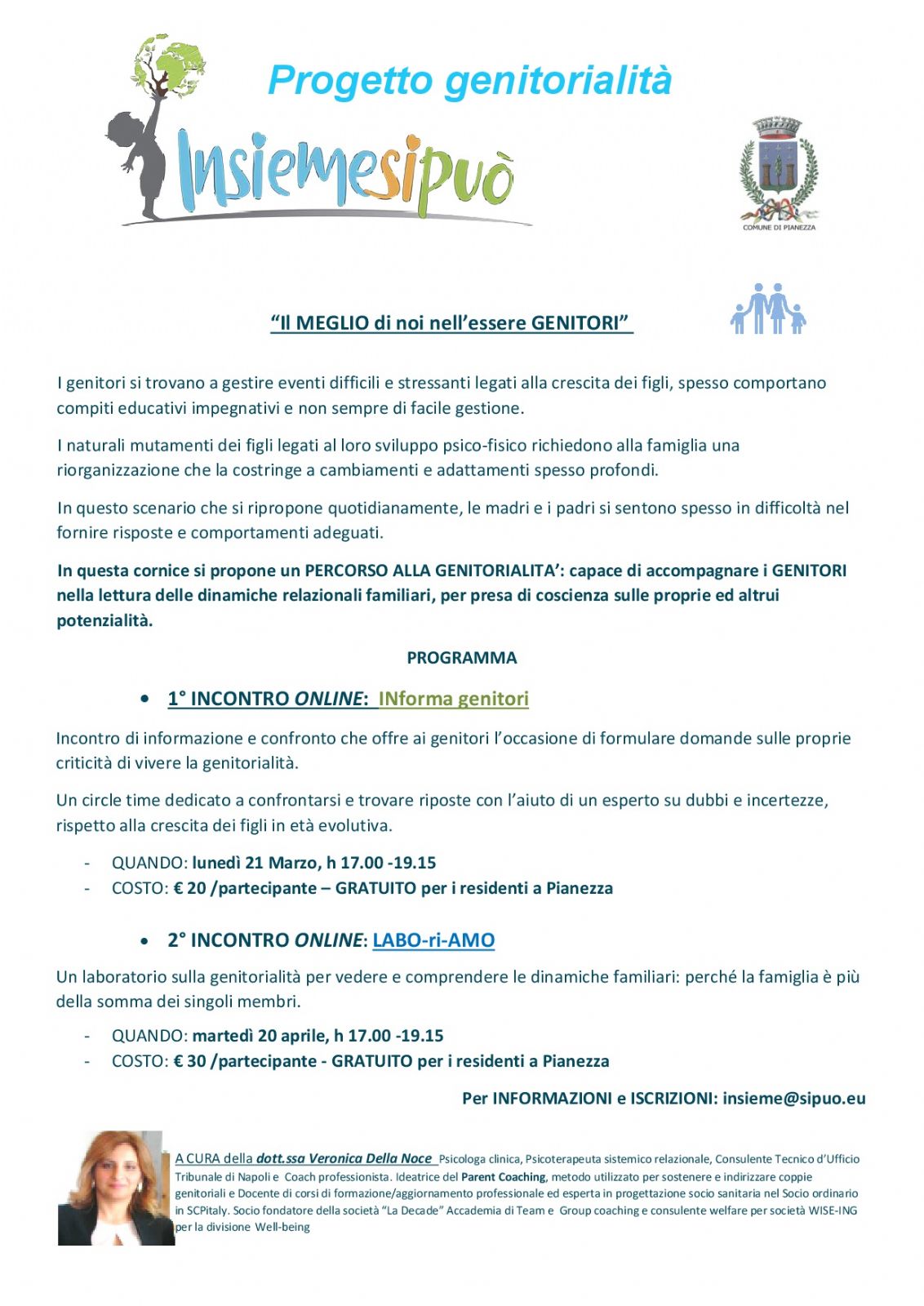 Gli incontri saranno condotti dalla dott.ssa Veronica Della Noce, parent-coach e psicoterapeuta.