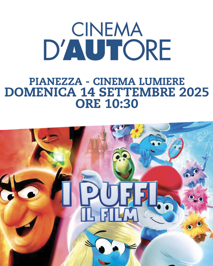 Domenica 14 settembre 2025 ore 10.30 “I Puffi” presso il cinema Lumiere di Pianezza Via Fratelli Rosselli n. 19 (prenotazione entro il 09/09/2025)